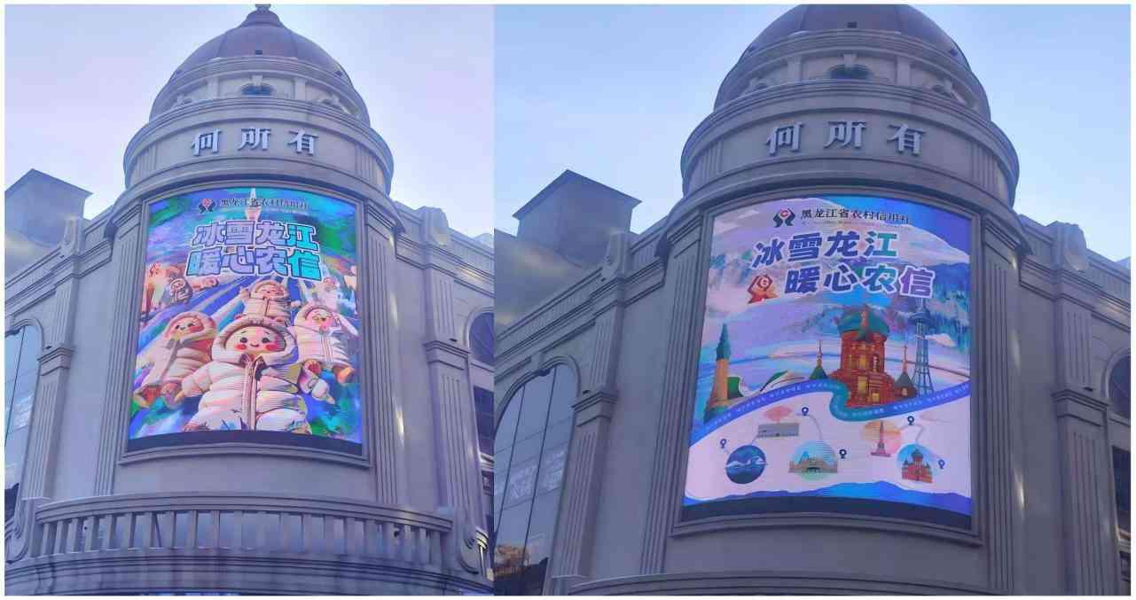 在具有百年悠久历史的商业步行街——中央大街,成功开展了以“冰雪龙江 暖心农信”为主题的电子屏幕宣传活动。通过精心策划,成功打造了一场鲜明醒目、色彩靓丽、质量上乘的视觉盛宴,有效提升了农信品牌的知名度,进一步吸引了广大公众的关注。